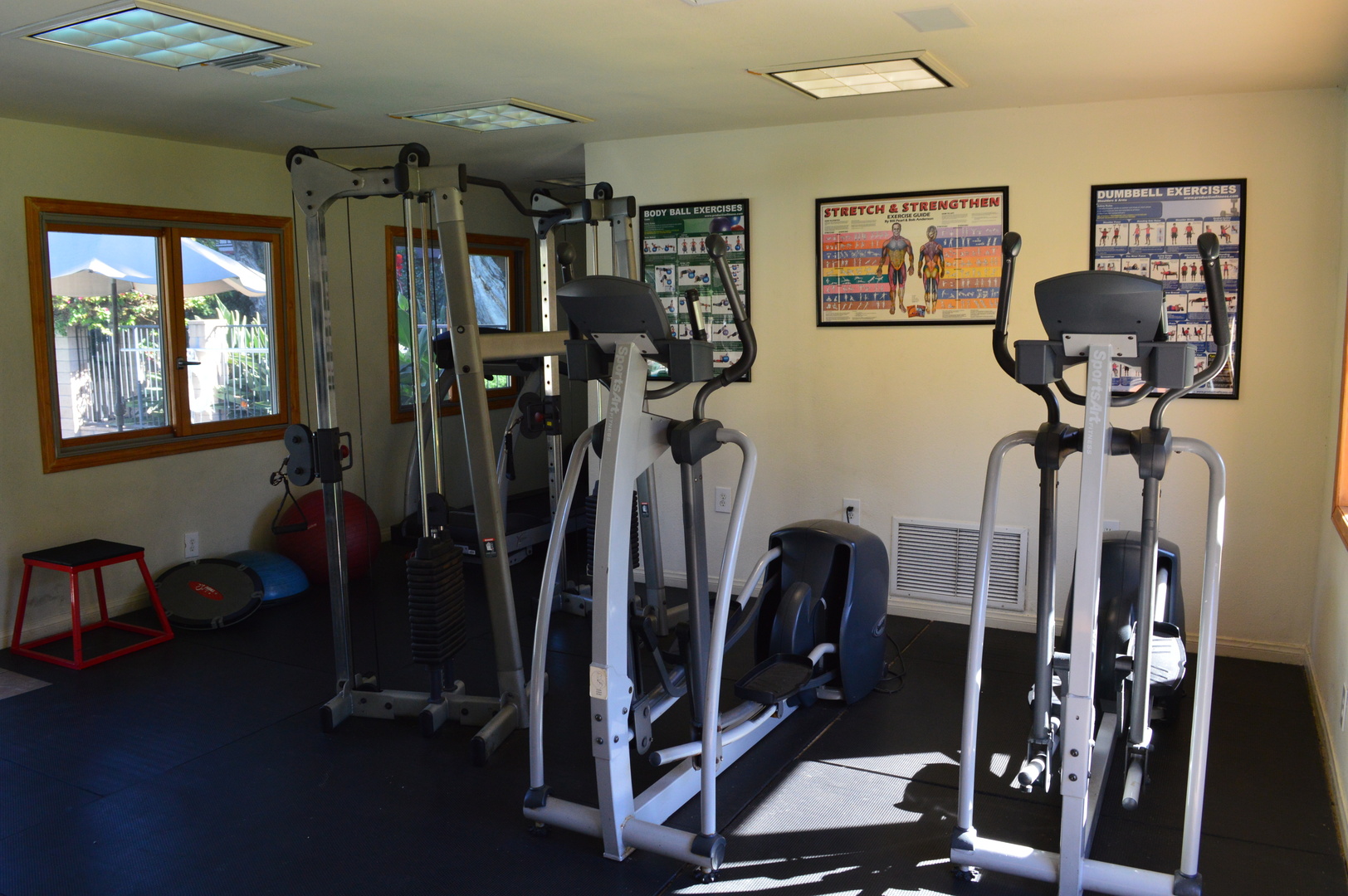 A very beautiful property, lots of vast green trees and plants, flowers everywhere. Here at Rancho Monterey Apartments we have alot for everyone to do. We have a fantastic GYM for those who love fitness. We have treadmills, elipticals, cycles, a nice cable machine, lots of dumb bells, and or newest edition the smith machine with over 400 LBS to squat and bench. Plus we have a pool to relax on those hot summer days. The kids can enjoy their own club house, their own little pool, playground and basketball court too. We pay most utilities to, Water, Trash, Gas, and Free Wireless Internet. All of our units come with Gas stove ,Gas heating, microwave, dishwasher, ceiling fans in the dining area, and storage in the carport area. We also have EV charging in your assigned parking available to our residents. For more info feel free to give us a call at 714-537-8500 to make an appointment to come view your new home today.